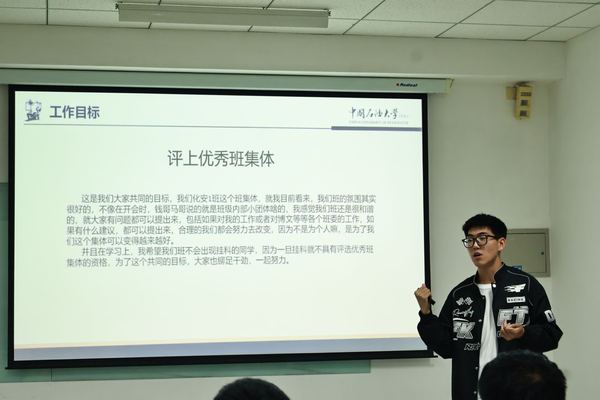 首先,此次班会由班助王子恒进行主持,其宣布班会开始。随后,由班长郭禧乐进行工作内容的介绍以及未来的规划,提出了化安2301班要以成为优秀班集体为奋斗目标,同时其针对近段时间出现的班级问题提出了解决措施。组织委员蒋云哲和宣传委员王柳对平时的工作进行阐述,鼓励同学们积极参与到相应的班级以及团组织工作中。心理委员王慧悦和生活委员杨逸超进行自我介绍和近段时间的工作情况的汇报。文艺委员杨宇涵和文体委员张洋也进行了开学以来的成果总结与未来的发展方向。学习委员邢云震提出了一系列促进学习的方案帮助班级同学学习。最后,班主任路帅做了班级总结,提出了“健康生活,好好学习”的期许,此次班会取得圆满成功。