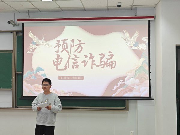 班会伊始,全体成员集体观看了反诈宣传片,深刻认识到了反诈的重要性。随后,张汇源向全体成员讲解诈骗的严重危害及常见的诈骗手段,让有被诈骗经历的同学分享自己的例子,使同学们意识到诈骗就在身边,进而向大家普及怎样预防诈骗及被骗后该如何维权的相关知识。