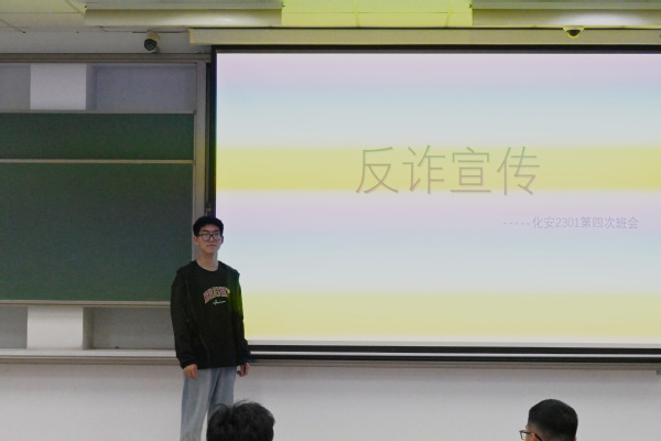 2023年11月1日下午2点,为提高同学们的反诈防骗意识,威廉希尔官网化工安全工程2301班于南教404开展以“防范电信网络诈骗,提高反诈防骗能力”的主题班会教育。