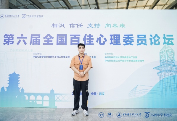 11月1-3日,由中国心理学会心理危机干预工作委员会与全国高校心理委员研究协作组主办、中南财经政法大学承办的第十八届全国高校心理委员工作探讨会暨朋辈辅导论坛在武汉召开,公司推荐的车桐宇同学荣获“第六届全国百佳心理委员”称号。