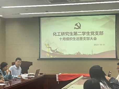 2023年10月31日,化工研究生第二员工党支部在逸夫楼重质油学术报告厅组织召开十月份组织生活暨支部大会,会议由支部书记康博远主持,支部全体党员参会,部分积极分子及发展对象列席会议。