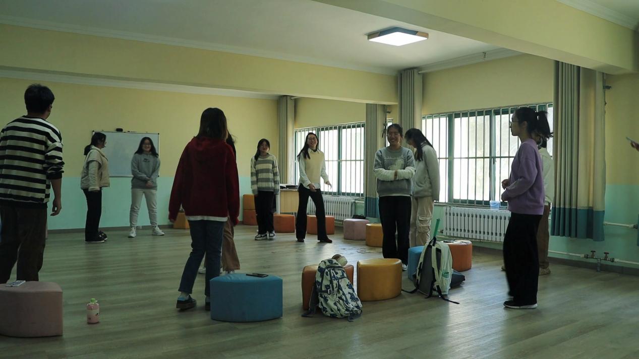 第三个环节是音乐游戏互动环节。同学们随着音乐节奏进行游戏互动,在欢乐的氛围中互相熟悉,加深了解。