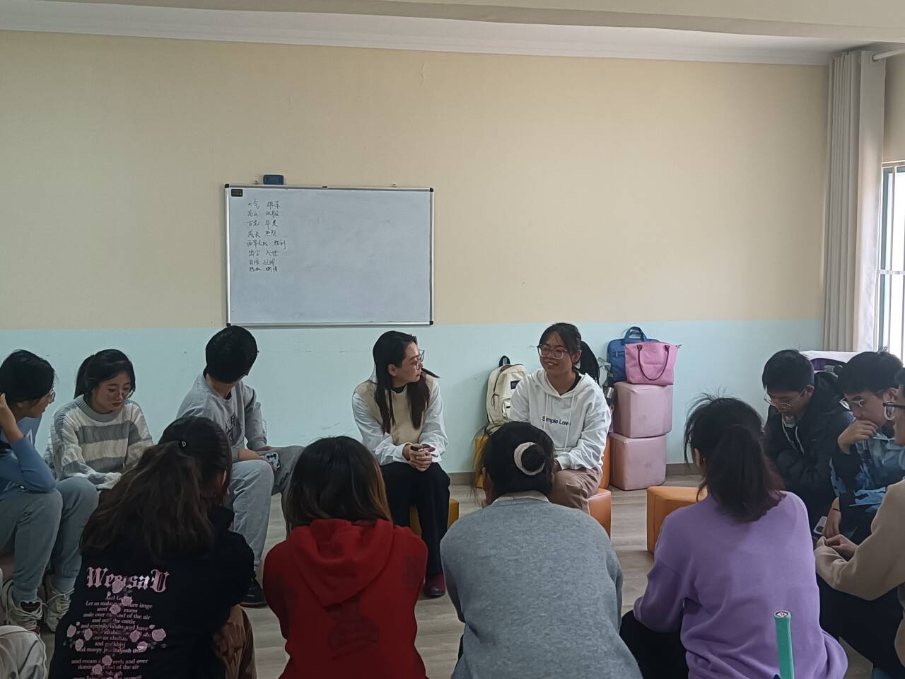 最后的交流总结部分,薛慧对同学们的疑问做出解答和指导。她总结道,我们通过团体分享音乐故事的形式,不仅感受到了真实的自己,同时也发现了别人对相同事物的不同理解,这就需要我们在人际交往中,保持一个开放的态度,去理解不同的人和事。同时,她还鼓励同学们每天通过音乐进行自我关怀。