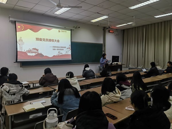 11月27日,环境与安全工程系研究生第一员工党支部在南堂112召开讨论接收唐方、马秀彪同志为预备党员的支部大会。会议由党支部书记张紫蝶主持。