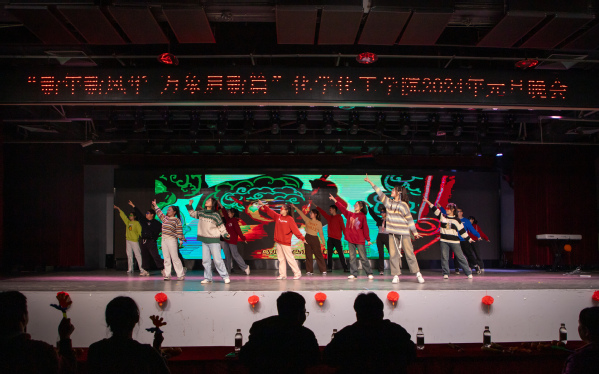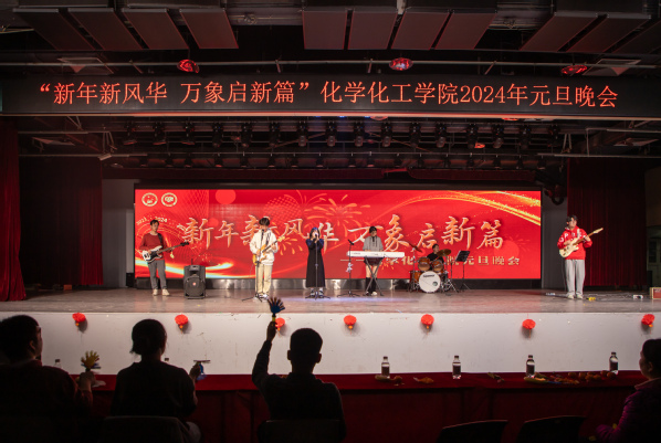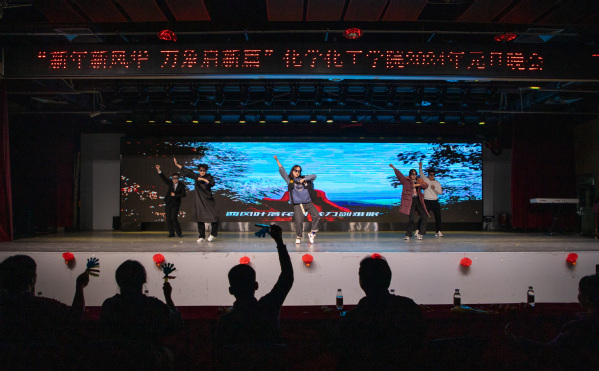 随后,化学2301带来的合唱曲目《夜空中最亮的星》用柔情舒缓的歌声勾起观众的美好回忆;释怀是人生的一大课题,声乐队的一曲《慢冷》教会我们慢冷的人也能学会释怀;能化2301和化安2302带来的舞蹈串烧《眉飞色舞》、化工2306叶文轩同学带来的舞蹈《小苹果》,自信的舞步凝聚住全场的目光,赢得阵阵喝彩;化安2301奏响《一起向未来》的旋律,携手起舞,心手相连,迎接充满激情与希望的新年;化工2305带来的歌曲《New Boy》让大家沉浸在震动人心的律动中,感受那滚烫的青春;器乐队演奏的一曲《golden hour》,钢琴与古筝交织如涓涓溪流,在停滞的黄金时分享受心灵的宁静。最后,晚会以由应化2302,2303和环境2302带来的《相亲相爱》收尾,给观众送去了新年的祝福。