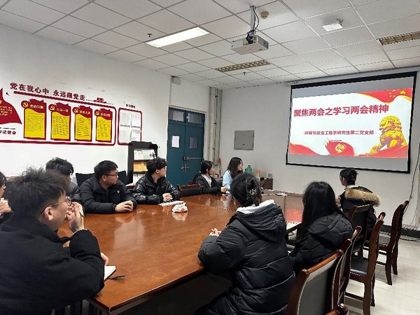 为深入贯彻学习习近平总书记在全国两会期间重要讲话精神,2024年3月11日,环境与安全工程系研究生第二员工党支部在工A617开展“学习贯彻两会精神,凝聚奋进力量”主题党日活动。活动由支部书记张雪菇主持,支部全体成员参加。