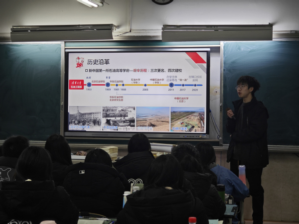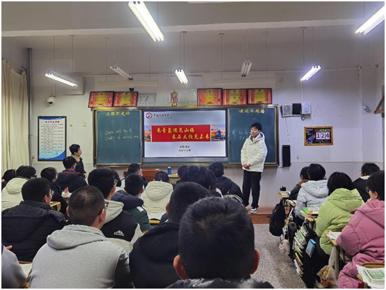 2024年2月,化工2007班葛广健作为石大“员工资助宣传大使”宣讲团的一员,联合山东大学、北京科技大学、山东师范大学等高校员工前往平度市第九中学开展社会实践,向学弟学妹介绍国家资助政策。
