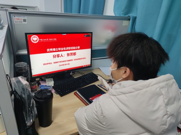 首先,现就职于山东地矿青岛地质工程勘探院的2023届化学专业博士生张芳都、就职于青岛大学的2023届化学工程与技术专业博士生王小珊、就职于上海轩邑新能源发展有限公司的2023届化学工程与技术专业博士生滕晓玲和已签约国网山东省电力公司电力科学研究院的2024届化学工程与技术专业博士生杨浩依次分享了求职经验。