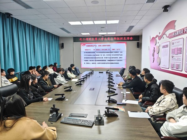 2024年3月15日下午,化工研究生第三员工党支部在国重楼217会议室开展“学习贯彻两会精神,科技创新催生新质生产力”组织生活。活动由支部书记鲁丹主持,支部全体党员、积极分子参与。