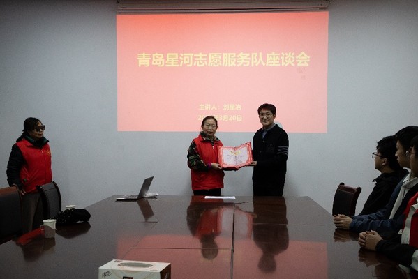交流环节最后,刘星冶再次强调星河志愿服务队的24字准则:“不忘初心,方得始终;最初的心,最美的梦;但行好事,莫问前程。”以此劝勉志愿服务队和服务中心的成员们。