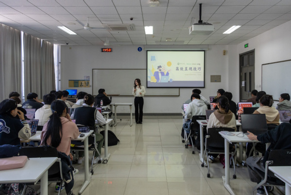 为增强学院23级员工干部的综合素质、提高呈现水平助力活动答辩,辅导员钱立坤邀请海信日立公司培训经理殷祯祯于3月30日在综A409开展“有效的呈现技巧”专题讲座,辅导员钱立坤、马胜祥出席,23级班长团支书全体参与。