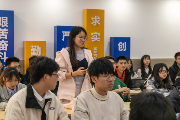 李佳康以“保研经验分享”为主题,详细地介绍了推免政策解读、保研人所需要的核心竞争力分析、保研相关信息的获取、夏令营前的文书准备、面试案例等内容,建议同学们做好前期科研成果积累、注重提升英语的听、说能力,面试时要平稳心态,将自身所学发挥到极致。然后,李佳烨、李易键分别以“挑战杯”和“互联网+”竞赛为例,为学弟学妹们带来了一场关于“三大赛”赛道解读、备赛过程分享、如何提升自己的科研能力的精彩演讲。李佳烨提到,做科研要善于发现科学问题,多问“为什么”,并勇于付出实践,用实验结果来证实想法,增强科研信心。李易键鼓励同学们在学习、科研中不要轻言放弃,注意心态调节,做好时间的统筹规划,让竞赛在第一课堂之外为自己“猛加分”。同时,李佳烨、李易键向同学们复刻了决赛答辩现场,让同学们身临其境,感受国赛现场的答辩氛围。