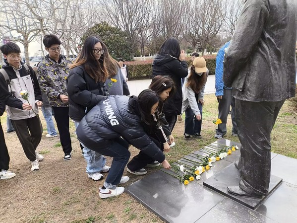 应化2103、化工2103、化安2202、化学2202团支部成员为杨光华雕像献花