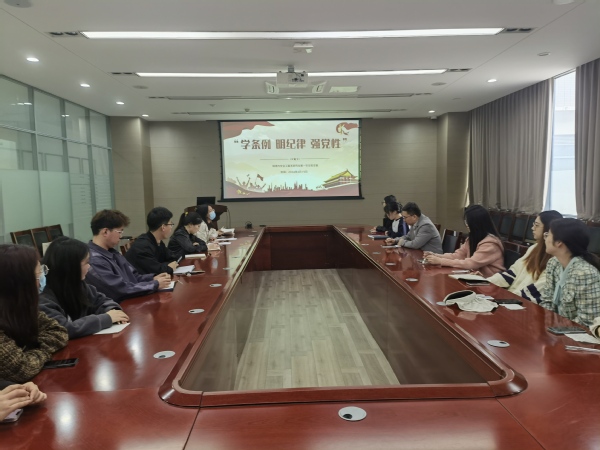 习近平总书记在二十届中央纪委三次全会上强调,以学习贯彻新修订的纪律处分条例为契机,要在全党开展一次集中性纪律教育。为使支部党员深刻领会《中国共产党纪律处分条例》精神,树立党章党规党纪意识,做到守纪律、讲规矩、知敬畏,2024年4月19日,环境与安全工程系师生在逸夫楼国重会议室举办“学条例 明纪律 强党性”专题学习会。