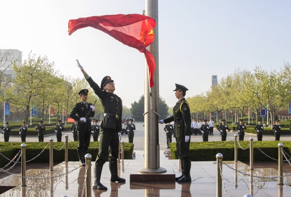 国旗护卫队升国旗,师生行注目礼