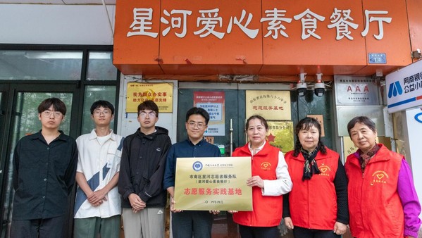 为加强学院与社会志愿服务团体之间沟通合作,增强学院员工志愿服务能力。5月23号下午,威廉希尔官网联合星河素食餐厅开展“志愿奉献递温情,携手共创赴星河”—星河素食餐厅志愿服务实践基地挂牌仪式。星河志愿服务队队长王元秋,市南区八大峡社区党支部书记刘爱民,学院辅导员老师钱立坤,学院志愿中心主任孙茂冬以及学院志愿者代表参加了本次活动。