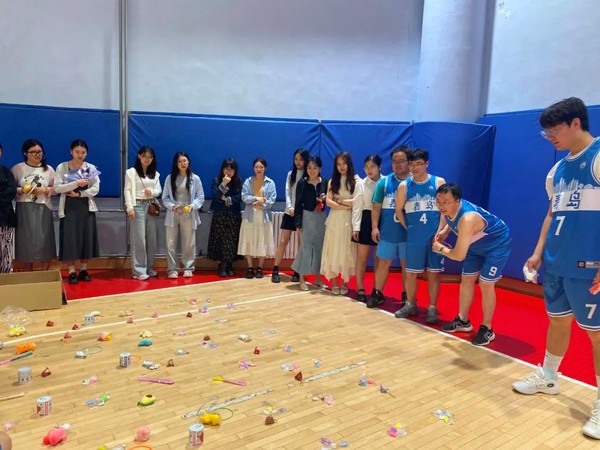比赛在裁判的哨声中正式拉开帷幕,篮球队员们以球赛之名,赴青春之约。本次比赛共分为四场,由毕业班同学和非毕业班同学组成两支队伍参与对抗,教师们参与到双方队伍中。赛场上,双方队员你来我往,激情碰撞,不断交替攻守,比分紧咬悬殊,凭借默契的配合,接球、扣球、传球一气呵成,观众们的呐喊助威凝聚成队员们的精神与力量,师生携手,亦师亦友,防守、跑位精准到位,游刃有余,展现出了队员们不可阻“篮”的青春风采。最终,经过激烈的角逐,毕业班队员们以100:94的成绩取得了本次比赛的胜利。在中场休息中,还进行了现场抽奖、投篮赢奖、套圈中奖等趣味活动,同学们积极参与,现场气氛攀升。