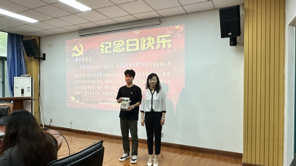 主题党日活动第三个环节,为党员过政治生日。全体党员共同为梁家琦同志庆祝他的“政治生日”。唐艳凌为其送上祝福,并希望其在今后的学习和工作中,时刻牢记党的宗旨,以习近平新时代中国特色社会主义思想为指导,树牢“四个意识”,坚定“四个自信”, 做到“两个维护”,勇于担当作为,永葆共产党员的先进性。