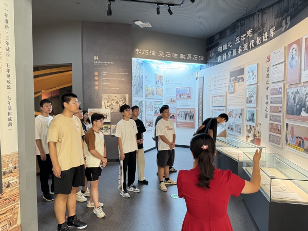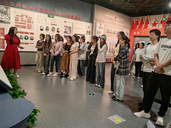 参观活动中,讲解员向员工介绍集团的历史沿革和建校70余年的建设成就,从“家国同心 育才兴邦”的北京石油学院时期,到当下的“追求卓越 奋进一流”的威廉希尔体育(华东)时期,展柜中的照片和文献讲述了波澜壮阔的峥嵘岁月所涵育的治学精神和深厚情怀,一代代石大人艰苦奋斗的辉煌成就,让新生深刻领悟了石大人的责任担当,深切感受到自己所肩负的责任和使命。