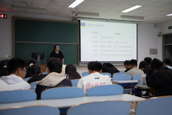 为做好大赛的班内培训和选手选拔,指导班级负责人掌握无领导小组讨论的组织流程、常见题型、讨论过程的注意事项和评判标准,10月12日下午,学院在南教楼215举办无领导小组讨论的集中培训,学院就业辅导员窦雅琴主讲,2024级各班级的班长、团支书以及学习委员参加,学院生涯工作室活动部部长陈静雯主持。