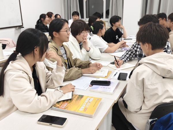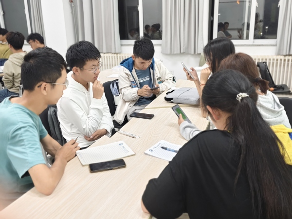 随后,班级同学分成4-5组进行给定题目的讨论,同学们积极讨论,各抒己见,为解决问题贡献出自己的智慧。每一个观点的提出,每一次讨论的深入,都展现出了同学们在团队工作中的能力优势和为达成目标所做的努力。