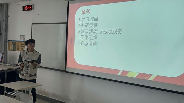 最后,辅导员李文轩对本次班会进行了总结,肯定班级成员在上一学年付出的努力以及取得的成绩,无论是学业上的刻苦钻研,还是课外活动中的团结协作,每一位同学都用自己的实际行动为班级荣誉添砖加瓦,展现出了青春的活力与风采;同时也表示正是这些点点滴滴的积累,汇聚成了班级不断前行的强大动力;并希望班级成员可以以此为新的起点,再接再厉,不仅仅满足于已有的成绩,而是要不断自我挑战,设定更高的目标,将追求卓越的精神内化于心、外化于行,付诸实际行动,不断追求卓越,更加全面高质量发展,携手并进,共同努力,为老员工活留下宝贵而难忘的记忆。