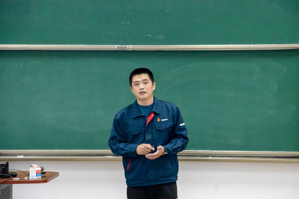 接着,位浩向我们分享了他的教育经历和工作经历,所讲述的每一个细节都彰显出他对化工事业的热爱和匠心精神,让我们仿佛置身于化工生产的现场,亲身体验到了化工行业的魅力与挑战。他告诉我们要坚守信念,有干劲,善学习好钻研,懂技术敢创新,勇担当讲奉献,同时他还告诉我们,务必要坚守学习与探索的精神,要把精益求精内化为习惯,不能惧怕吃苦,要有敢于啃硬骨头的勇气。唯有劳动才能够创造幸福,只有实干才能够成就伟大的事业。