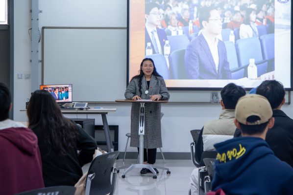 刘爱民讲述了身处新时代如何做挺膺担当的合格党员。她讲述了星河志愿服务队中两位70多岁的高龄志愿者数年如一日坚守付出的感人经历,只因一句“我们是党员”。她指出,党员的初心并不需要任何华丽的辞藻来修饰,只需要朴实的语言,并献出自己的一份爱心就足够了。她鼓励积极分子们做好每件平凡的小事,就可以创造出不平凡的成就。随后,刘爱民又引用了矿井塌方,党员矿工身先士卒寻找出路,最终使全员获救的故事,讲述了党员的先锋带头作用,告诫积极分子们要践行人民利益至上,全心全意为人民服务的宗旨,发扬“爱人民”的精神,并将这些精神传承下去。