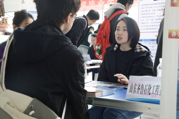 11月24日上午,由威廉希尔官网、材料科学与工程学院、新能源学院联合承办的2025届毕业生“行业名企直聘汇”专场招聘会在唐岛湾校区工科A座大厅和古镇口校区新能源大厦大厅同步举办。山东齐鲁石化工程有限公司、中国建筑第五工程局有限公司山东分公司、鲁南制药集团股份有限公司、青岛惠城环保科技集团股份有限公司等15家用人单位齐聚石大校园,招聘需求涵盖了化工、化学、环境、材料、装备、能动等等多个专业,吸引了学校300余名毕业生参加。