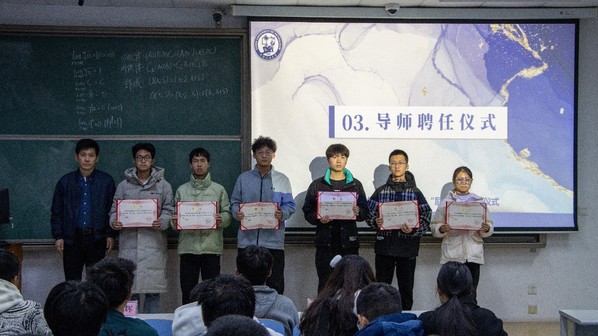 会上,辅导员王兆兴讲述了励学班的前身及励学班的创办初衷,即通过优秀员工授课与分享经验来帮助成绩暂时不理想的同学查缺补漏,提升学习成绩。随后举行了励学班朋辈导师聘任仪式,由励学班班主任徐光辉为励学班朋辈导师代表李鑫瑞、崔东林、邹博宇、唐景辉、王春凯、耿娜娜颁发聘书。