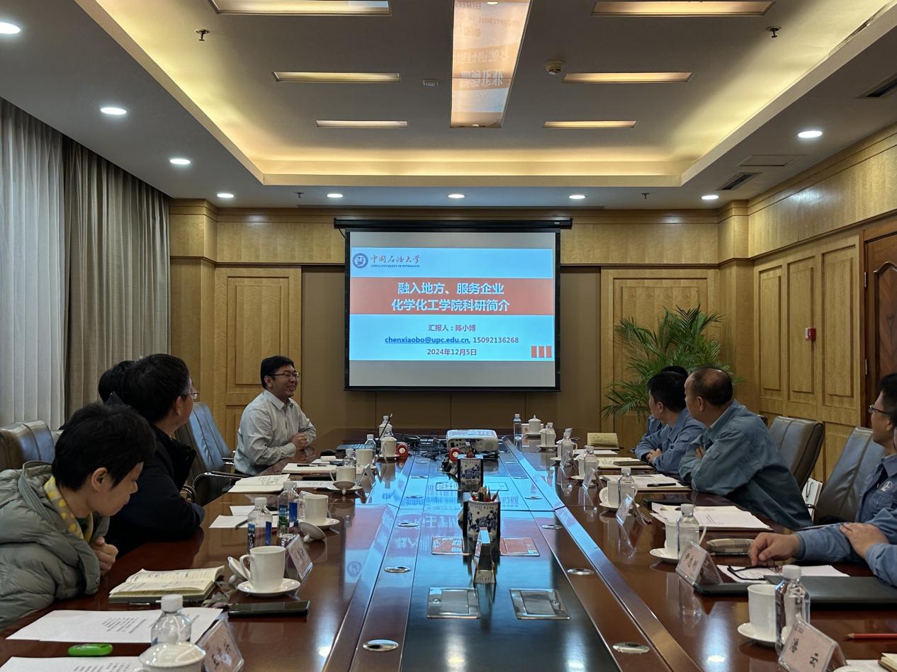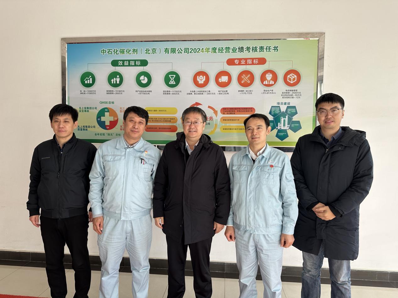随后,一行人来到中石化催化剂有限公司。双方就催化剂研发、生产技术及市场应用等方面进行了深入研讨。徐光辉指出,校企合作是推动学院公司产品改革、提升人才培养质量的重要途径,希望双方能够进一步加强沟通与合作,共同推动科技创新和产业升级。中石化催化剂有限公司领导对此表示高度认同,并期待与学院在更多领域开展深入合作。