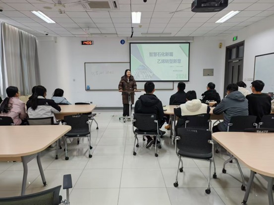 西域化韵梦工队在队长闫雪梅带领下以“智慧石化新篇,乙烯转型新章——兰石化调研宣讲”为主题,讲解了实践队在实践过程中的所悟所想,并就兰石化公司百万吨乙烯计划予以分享。