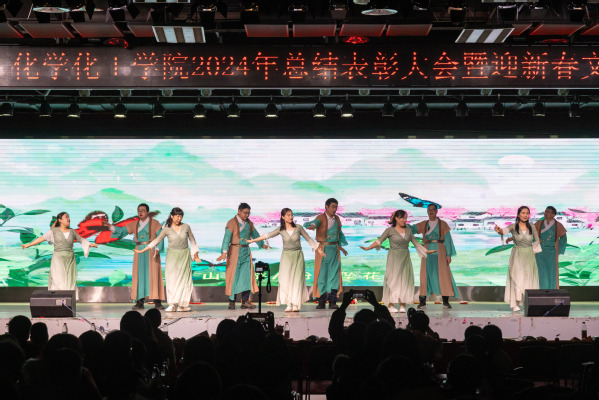 迎新春文艺汇演以一支来自威廉希尔官网春意盎然的舞蹈《上春山》拉开帷幕,欢快的旋律,轻盈的舞步将联欢会带入迎新春的主题氛围;化工实验中心精心编排的国风舞蹈《雪龙吟》身着一身古装,用折扇带来张弛有度的舞蹈表演,赢得场下阵阵欢呼;学院办公室带来歌舞《千桃迎春》极具活力,洋溢着对新一年的期待,同时也表达出对新年的美好祝愿;应化2402王经宣和化学2301金建程献上合唱《无名的人》,为一年来辛苦耕耘,拼搏奉献的师生送上深深的祝福;化学实验中心齐舞《相亲相爱》,表达学院上下同心,和睦温暖的良好氛围,祝福大家一路携手,再创辉煌;随后,国重室老师们带来诗歌朗诵与合唱《感恩重油、砥砺前行》以激昂的情绪,表达着对学院的感激之情;化工系老师们身着一身正装,完美演绎歌曲《李白和小伙伴们的小合唱》,通过精心改编歌词,讲出老师们在学院中的奋斗历程与未来目标;化工2305李文婷带来古筝弹奏《万疆》,灵动的双手拨动古筝发出悦耳的声音,令人陶醉;接着是环境与安全工程系带来的舞蹈《太极功夫扇》,动作整齐划一,极具观赏性,磅礴的气势征服现场的每一位观众;应用威廉希尔官网的舞蹈《一起向未来+新年快乐》,以灵动的舞姿展现出对美好未来的殷切祝愿,新年快乐更是表达了对全院上下的真切祝福;最后是生物与能源化工系带来的压轴歌舞《早安,中国》,将联欢会进一步推向高潮。本次联欢会过程中还设置了抽奖环节,由学院领导抽出23位幸运观众,让大家在收获欢乐的同时还收获了幸运。