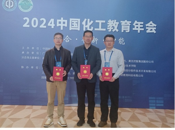 1月7日至9日,由中国化工教育协会主办的“2024中国化工教育年会暨中国化工教育协会第五届十次理事会扩大会议”在广西南宁举行。大会为2024年优秀教学成果、教材和论文获得者颁发证书,学院申报的“学科交叉思政铸魂实践赋能--行业特色高校一流化工专业人才培养模式创新与实践”获评教学优秀成果特等奖,《Chemical process safety education in China: An overview and the way forward》获评优秀论文一等奖,《化工过程设计与集成》获评优秀教材二等奖。