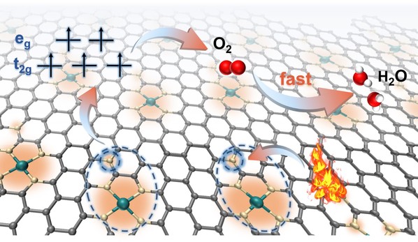 氧还原反应(ORR)是新能源存储与转化的核心反应之一,因涉及多电子转移导致反应动力学缓慢。尽管贵金属Pt/C催化剂具有优异的ORR活性,但原料高昂的价格以及稀缺性极大限制了Pt/C催化剂的应用。近年来,以Fe-N-C为代表的单原子催化剂被认为是Pt/C催化剂的有效替代方案,但其性能相对于Pt/C仍有较大差距。ORR具有自旋依赖性,Fe-N-C催化剂自旋态影响其历程。胡涵教授团队通过理论计算阐明了氮物种对Fe-N-C催化剂自旋态的影响规律,揭示了石墨氮对自旋态的调控机制及对ORR活性的提升作用。基于此,团队开发了一种简单、高效的氮物种辅助Fe-N-C催化剂自旋调控策略,通过调控催化中本征氮物种构型实现了对催化剂活性中心由低自旋态向高自旋态的转变,从而优化了氧分子吸附解离能垒,显著提高了催化剂的活性及稳定性。这一催化剂被成功用于构建高性能的锌-空电池,并实现了对手机等数码产品的快速充电。