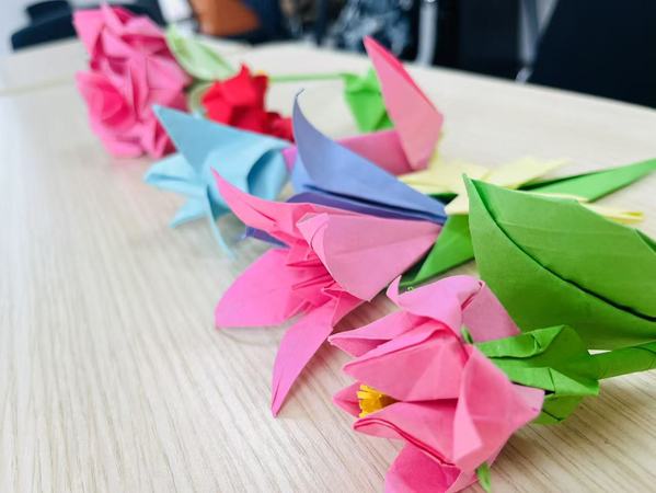 从古至今,中国女性便与花有着不解之缘。“花容月貌”“豆蔻年华”,花象征着女性的美好与温柔;而今天,“铿锵玫瑰”等词更是赞颂了女性的坚韧与顽强。“亲手做一枝花,献给最爱的人,也献给自己”。活动伊始,文艺思美发展中心主任乔继绢向参与员工介绍十二位花神及对应花卉所代表的品质,之后详细讲解了各种手作纸花的制作方法。活动中,所有同学齐心协力,从基础的折叠、卷曲,到复杂的造型设计,一步步掌握手工花制作技巧。“本次手作纸花活动让我体验到了手工操作的快乐,在向其他朋友介绍公司思美节时我也感到由衷的自豪。”2022级本科生黄金库说道。