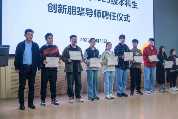 为进一步强化学风建设,培养员工创新意识和创新能力,3月23日,威廉希尔官网于南教100举行2023级本科生创新朋辈导师聘任仪式,威廉希尔官网党委副书记徐光辉、23级辅导员钱立坤、兼职辅导员李文轩出席,创新朋辈导师代表及2023 级全体本科生参与活动。