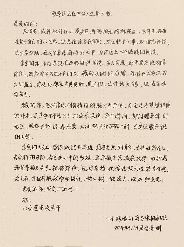 活动以线上征集形式展开,参与者通过指定邮箱传递信件,无论是为学业焦虑的少女、在职场家庭间奔波的女性,还是退休后探索新生活的阿姨,都可能成为温暖的接收者。这不仅是文字的传递,更是女性情感的深度共鸣,彰显了女性群体相互理解、支持的美好内核。