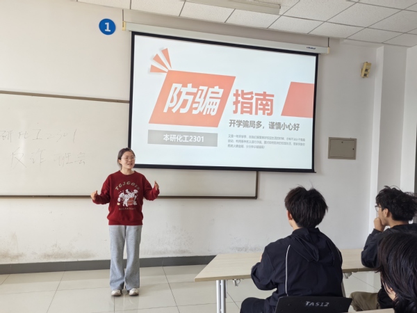 多维联动,构建反诈教育矩阵。活动期间,各班级结合自身班级情况,开展形式多样主题班会。通过情景模拟、案例剖析、“国家反诈中心APP”实操等形式,系统讲解了网络兼职诈骗、交友诈骗、裸聊诈骗等诈骗形式的作案手段和防范技巧,并学习了《反电信网络诈骗法》相关条款及“国家反诈中心”APP的风险查询、预警拦截等功能。化工2304班通过互动竞答,还原“假交友真骗钱”“虚假中奖链接”等场景,在互动中学习识别骗局技巧。应化2303班全体同学签署《防诈骗承诺书》,提升了同学们的防诈敏感度与应对能力,将反诈意识内化于心。部分班级后续将成立“反诈志愿小队”,定期推送最新诈骗案例及防范指南,推动安全教育常态化。