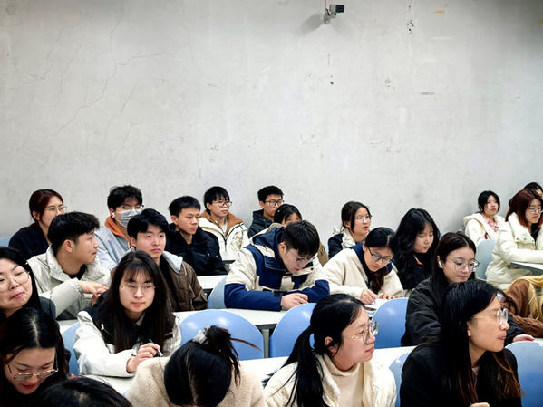 随后,学习委员张晓倩围绕两会政策进行深度解读:从“职业本科纳入‘双一流’建设”“AI查重工具推广”等教育改革议题出发,探讨学术资源优化与科研诚信挑战;聚焦芯片、生物医药、人工智能等“卡脖子技术”攻关方向,分析高校产学研融合的实践路径,并以川大华西医院AI医疗大模型、中国矿业大学“井下机器人”项目为案例,阐释科研成果转化的现实意义;针对就业领域“学历歧视禁止”“弹性退休试点”等政策,引导员工辩证看待“非升即走”压力与基层科技岗位需求间的矛盾,呼吁平衡个人职业规划与国家发展需求。