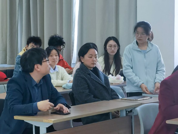 在交流环节,老师为支部员工在学习及生活中遇到的问题进行答疑。同学们就未来就业方向及自身如何努力向老师提问,陈坤老师建议关注就业单位相关信息,瞄准方向发力,并以石油方向的“三桶油”为例,详细讲解如何为未来工作积极准备。杨修洁老师则强调专业知识学习的重要性,从教育角度出发,表示将调整培养方案,以培养更符合社会新质生产力发展需求的人才。