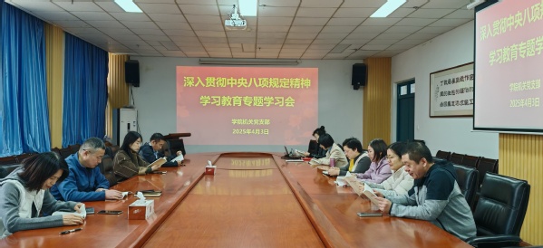 会议要求,全体机关支部教职工要深刻认识开展此次学习教育的重要意义,切实把思想和行动统一到党中央决策部署上来。要把学习教育与日常工作紧密结合起来,做到两不误、两促进。要通过学习教育,进一步增强纪律意识、规矩意识,严格遵守中央八项规定精神,坚决杜绝“四风”问题反弹回潮。要加强服务意识,不断提高工作效率和服务质量,以实际行动践行党的宗旨。同时,要加强自我监督,勇于接受师生群众监督,确保学习教育取得实效,以踏石留印、抓铁有痕的劲头,推动中央八项规定精神在学院机关落地生根。