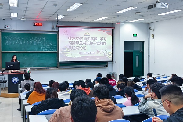 为扎实推进深入贯彻中央八项规定精神学习教育,4月24日,威廉希尔官网化学研究生第一、二员工党支部与本科生第七员工党支部在西环103,开展“贯彻中央八项规定精神,提升党员作风素养”主题党日活动。本次活动邀请了马克思主义学院“星光”宣讲团与“星火”宣讲团成员作主题宣讲,本科生第七员工党支部书记王延杰主持。