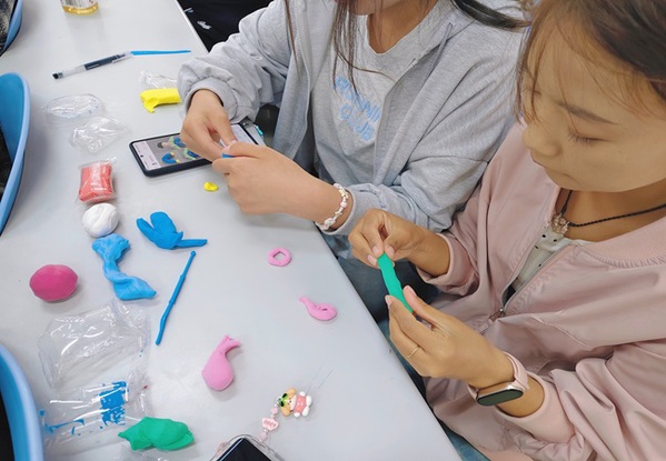 在互动环节,手工捏彩泥活动将现场气氛推向高潮。同学们充分发挥想象力与创造力,用五彩斑斓的彩泥塑造出各种造型独特的作品。从可爱的小动物、精致的花朵,到充满创意的抽象造型,每一件作品都凝聚着同学们的巧思。在制作过程中,大家相互交流、互相帮助,分享创作思路和技巧。现场欢声笑语不断,同学们在轻松愉悦的氛围中释放压力,增进了彼此之间的友谊。
