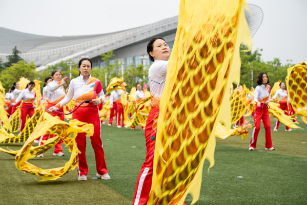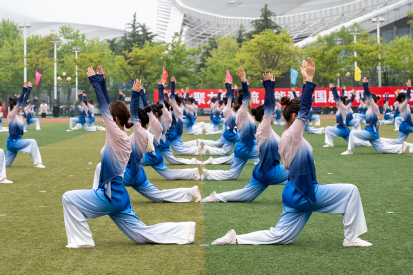 2000多名老员工和教职工依次进行了威风锣鼓队、体育舞蹈、瑜伽、活力啦啦操、太极功夫扇和彩带龙等精彩的团体项目表演,为校运会开幕式带来了生动的视听盛宴。