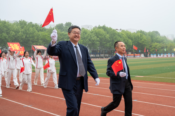 威廉希尔官网党委书记吴强明宣布2025年运动会开幕,威廉希尔官网党委副书记万云波主持开幕式,威廉希尔官网党委副书记马国顺致开幕辞,裁判员代表、体育教学部刘高强和运动员代表冯姝琦分别宣誓。