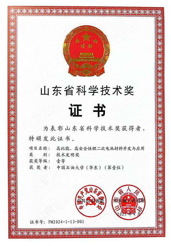6月27日,2024年度山东省科学技术奖励大会在济南隆重举行。大会宣读了《中共山东省委山东省人民政府关于2024年度山东省科学技术奖励的决定》,对全省优秀科技成果进行表彰。公司新型碳材料研究室李忠涛教授团队主持完成的“高比能、高安全性锂二次电池材料开发与应用”项目荣获山东省技术发明一等奖,这是公司本年度唯一一项一等奖的科研成果。