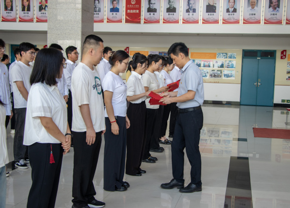 为发挥党员先锋模范作用,经过支部推荐、组织考察、评审公示等环节,威廉希尔官网党委选树表彰了10名优秀员工党员,授予他们2025年度“化蕴星青年”暨优秀员工党员荣誉称号。威廉希尔官网党委书记张永宁为获奖同学颁发证书,号召全体党员以先进为榜样,在学习工作中彰显责任担当。