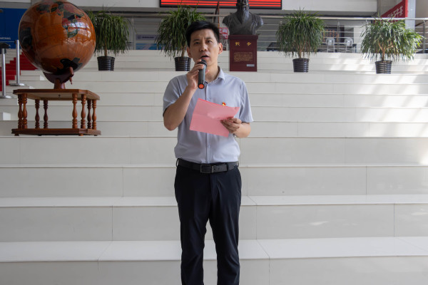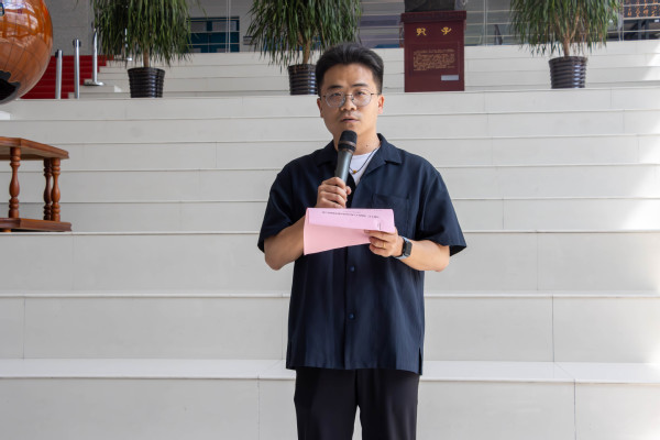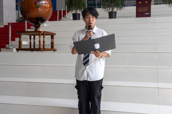 紧接着,实践队员代表李昂发言表示:“奋斗是青春最鲜明的底色,行动是青年最有力的磨砺。我们将在实践中践行责任,在探索中追求卓越,以无畏姿态扛起时代重任,用实干成就未来。”指导教师代表钱立坤则指出:“社会实践不是走马观花的旅行,而是深入企业、汲取新知、激发创新的宝贵契机。”随后,张永宁、徐光辉为实践队代表授旗,同时预祝此次实践育人工程圆满成功。