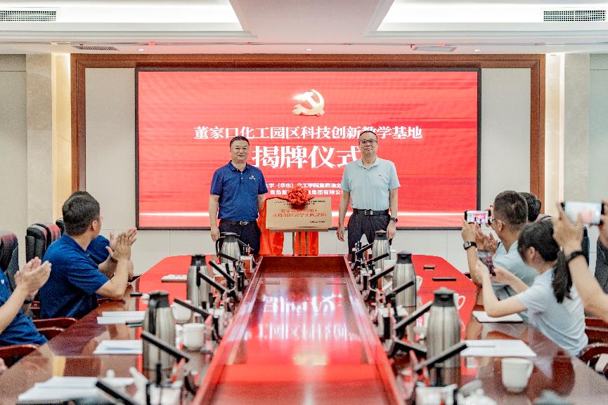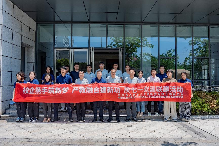 为迎接中国共产党成立104周年,深入学习贯彻习近平新时代中国特色社会主义思想和党的二十届三中全会精神,6月30日上午,重质油全国重点实验室支部书记柴永明带队赴董家口化工园区进行联合党建、产教融合等工作交流,党支部联合青岛董家口发展集团党委,开展“校企携手筑新梦,产教融合建新功”党建联建主题党日活动暨董家口化工园区科技创新教学实践基地揭牌。国重室支部教师党员柴永明、朱丽君、覃正兴、刘宾、李大伟、刘贺、王敬贤、宗培杰和多名员工党员代表等参加交流活动。